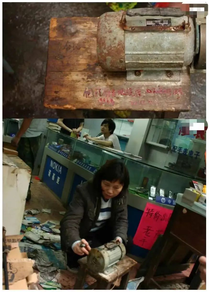 许多档口已经开始搬了,一家兼卖手机、修表、磨眼镜的店还开着门。女店主说,1983年就开了这家店。墙角的木凳上,放着一个锈迹斑斑的马达,是用来磨镜片的。陈洲花20元买下了它,这是他们在城中村收的第一个物件——它和女店主的生活,已经融入城中村,成为一件近30年的见证物。店主用红色油性笔把使用的起止时间写在马达上:1986-2010.4.11。