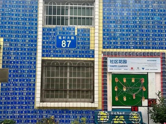 在广州海珠区,林立的高楼中间有一片粉色平房,这里是怡乐社区,租金比周围低廉些。里面有三条小巷,往社区深处走,视线多半会被一栋蓝绿色的平房吸引——外墙上贴着2100多块“马赛克”,都是废弃的旧门牌。陈洲和张晓静的“博物馆”就在这里。