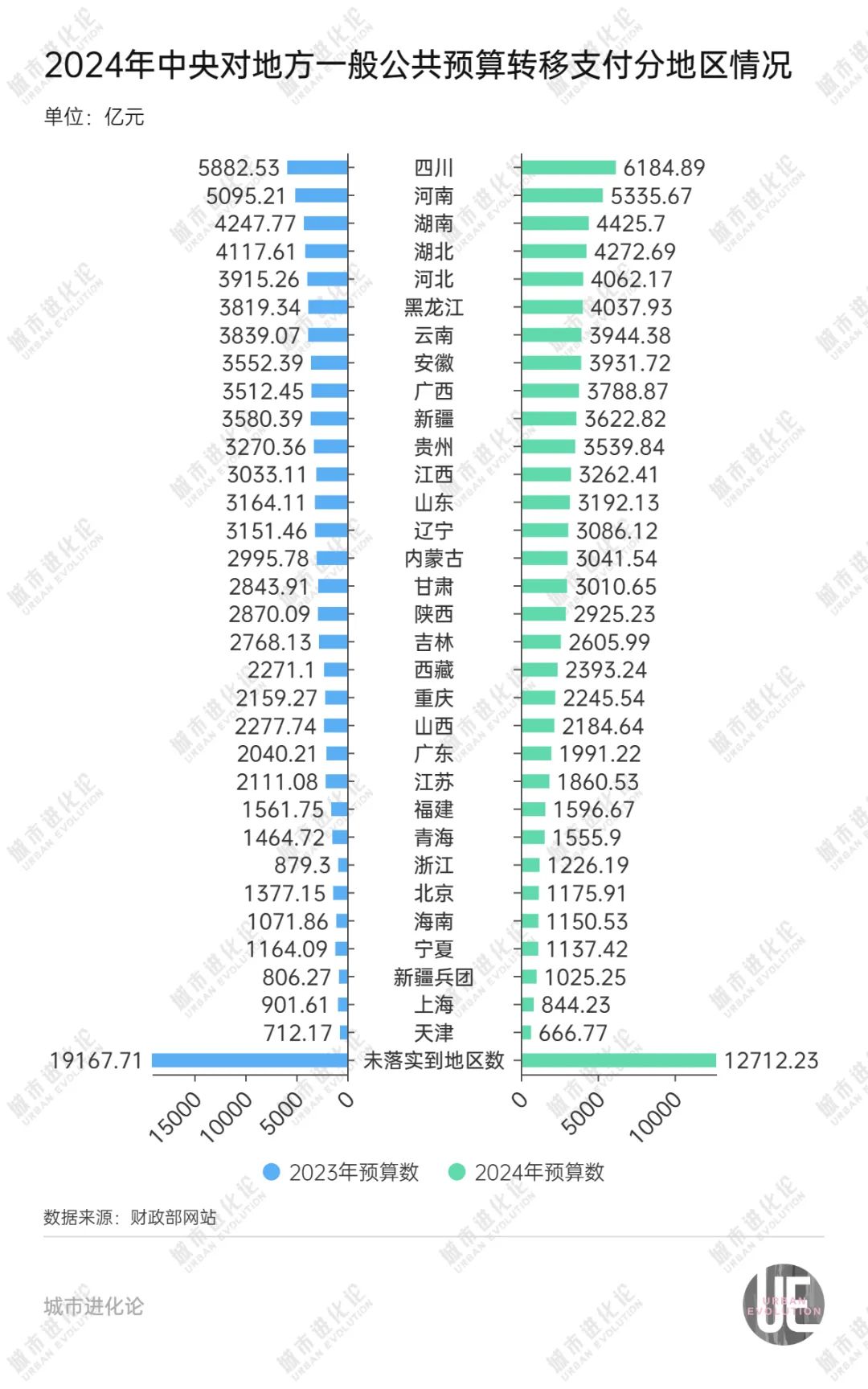 近期,2024年中央财政预算公布。透过这本账,可以看到2023年中央对地方转移支付的执行情况,也能看到2024年转移支付的预算情况。