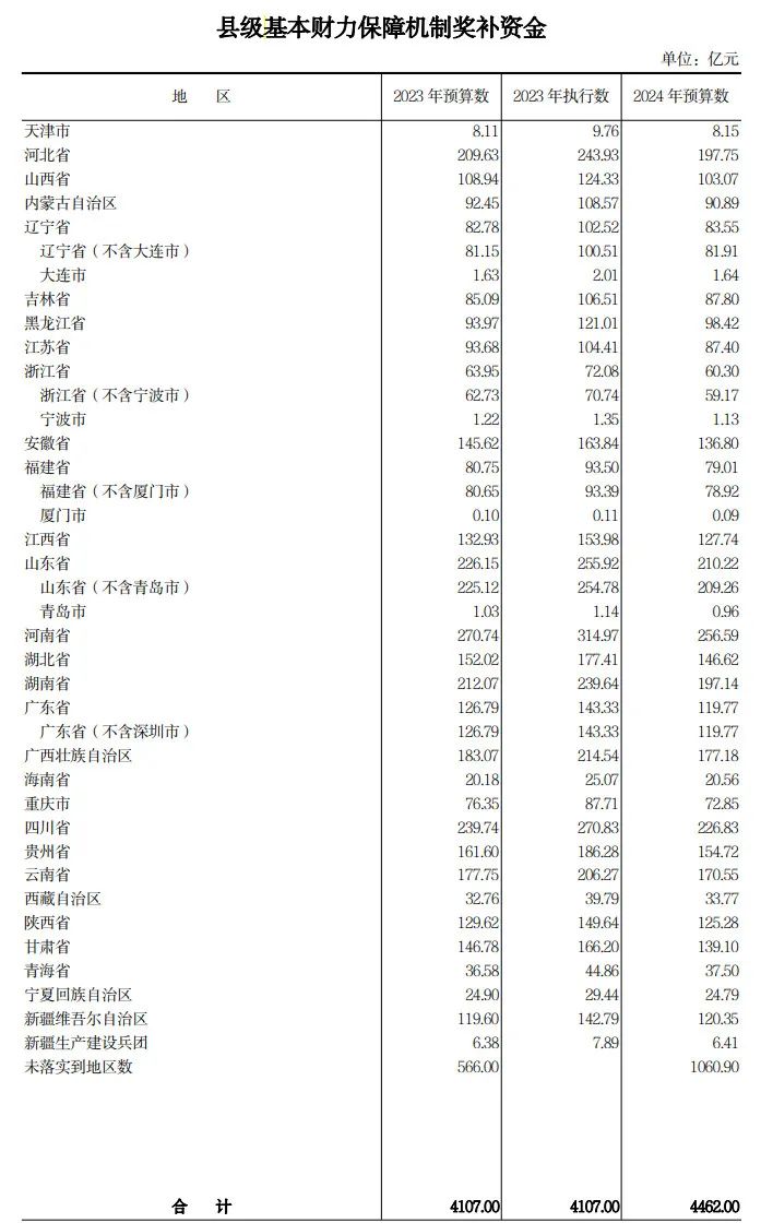 可以看到,推动财力下沉,县级基本财力保障机制奖补资金还在增加,今年在2023年基础上再增加355亿元,增幅8.6%。
