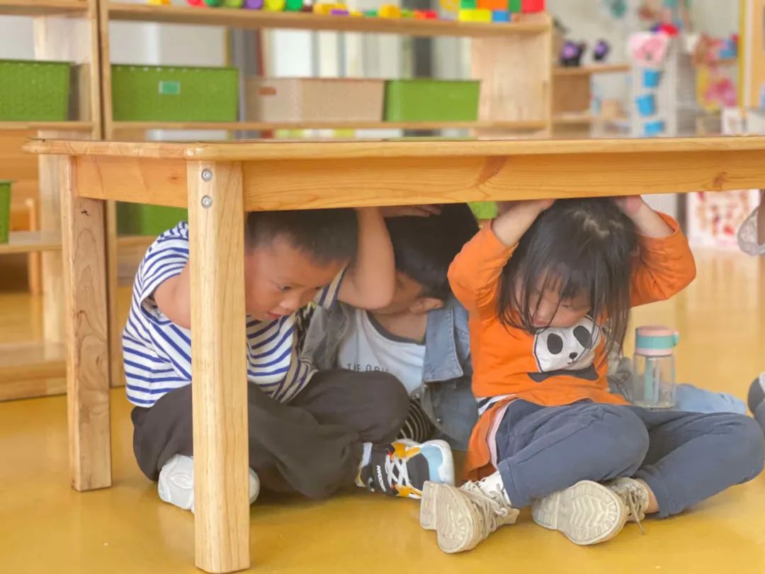 早上8时,青田县船寮镇有明显震感,青田县船寮镇中心幼儿园马上拉响地震避险警报,各班教师立即停止活动,采取就近躲避原则,迅速指挥幼儿抱头躲在桌子底下、墙角、卫生间等地方。(杨虹)