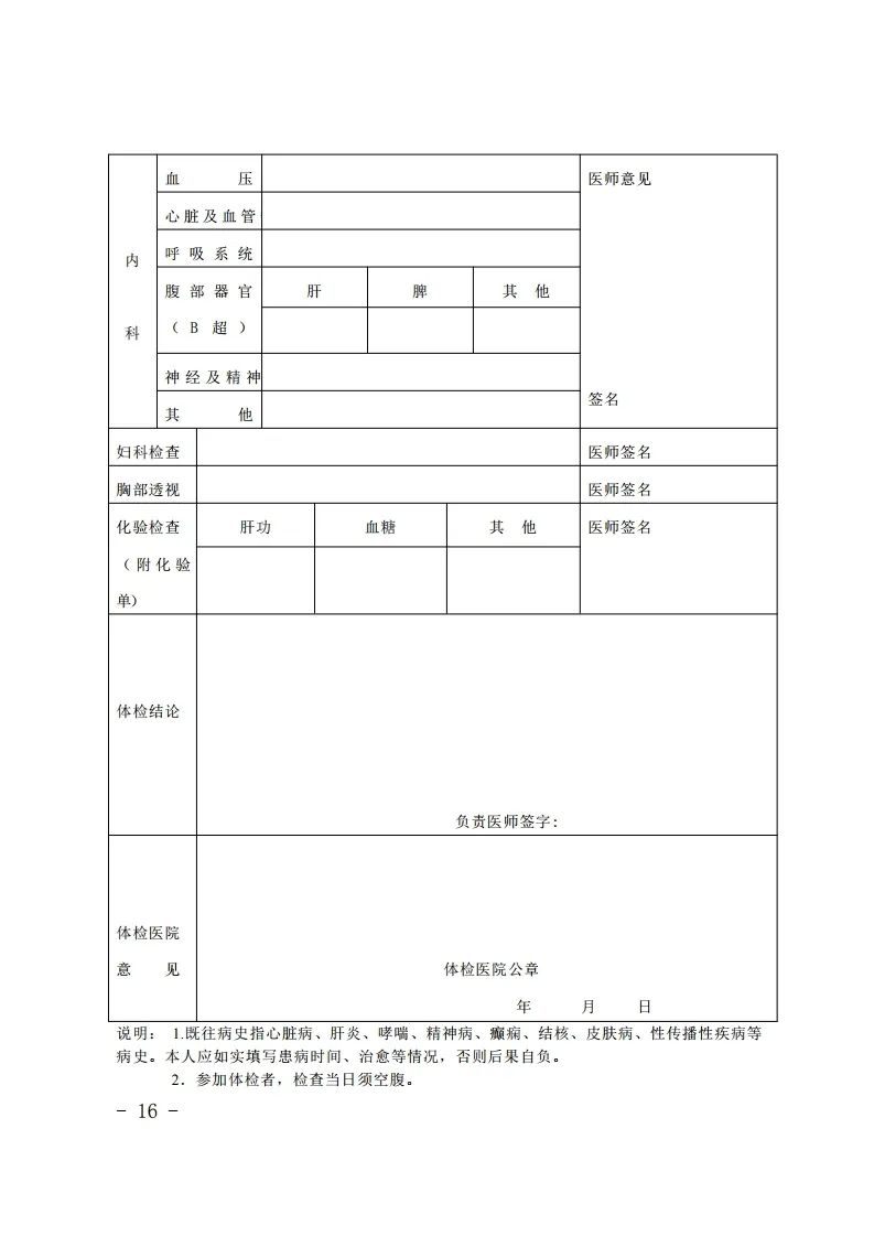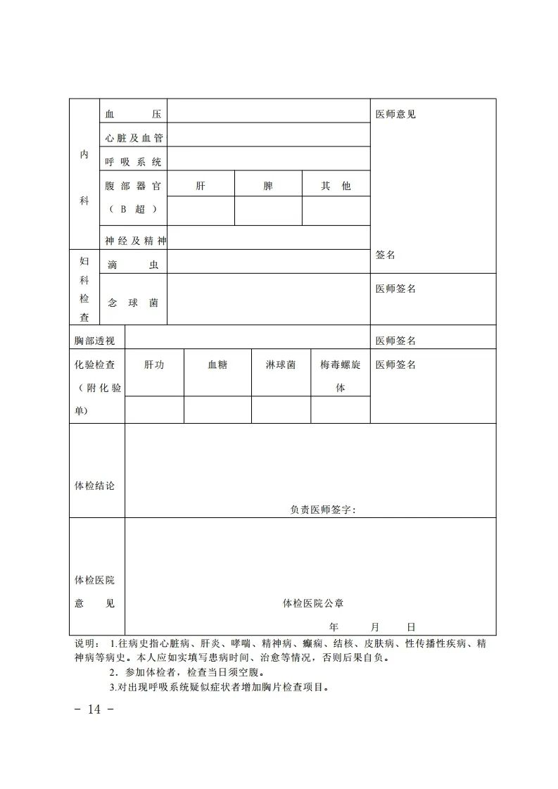 注意:备孕人员须完全按体检表内容逐项检查,不可缺项;怀孕人员可免做胸透项目,但需提供医院出具的相关医学检查证明。