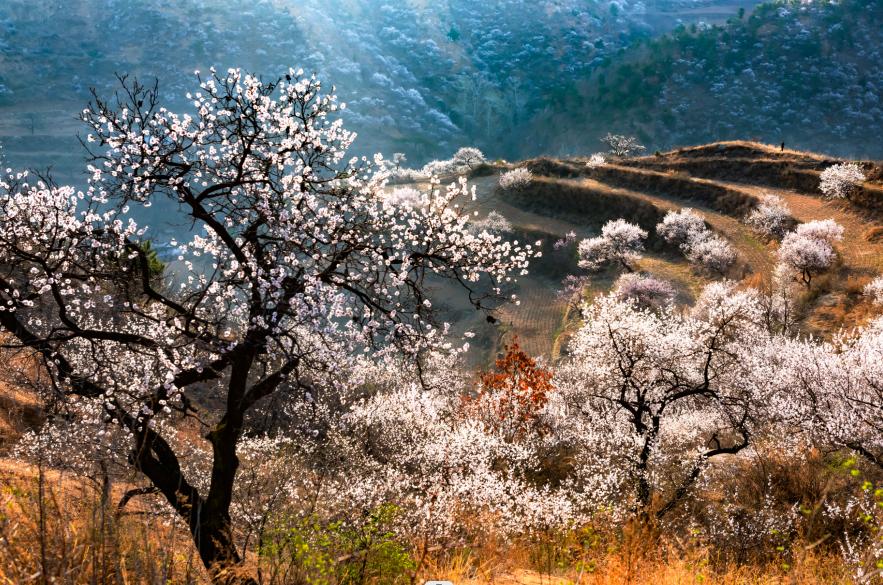 青龙几乎漫山遍野都有山杏花儿的影子,似轻纱缦胧,粉云飞雾,让人如入梦境。春天,一定要来青龙赴一场山杏花儿的盛宴。