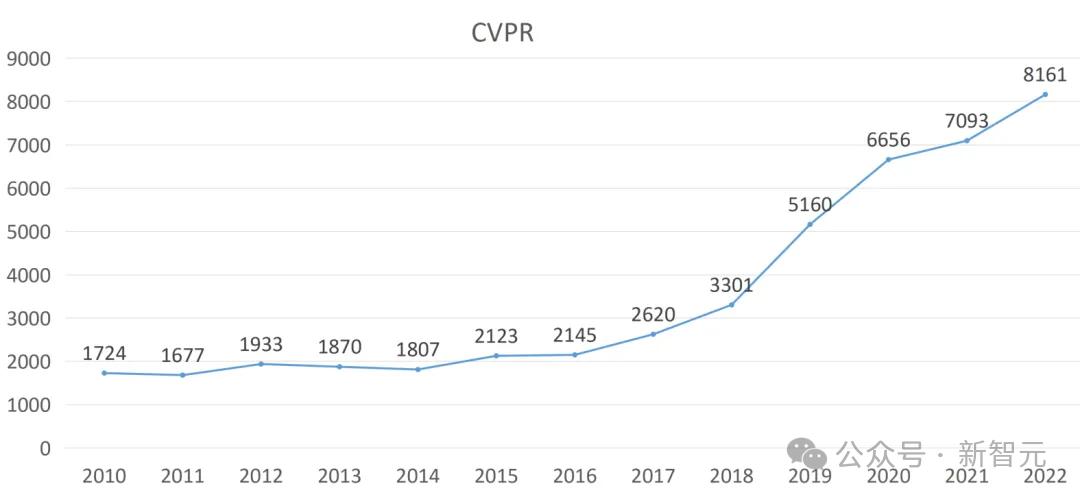 据统计,CVPR的投稿量在2010-2016的7年间仅从1724份增加到2145份,在2017年后则迅速飙升,进入快速增长期。