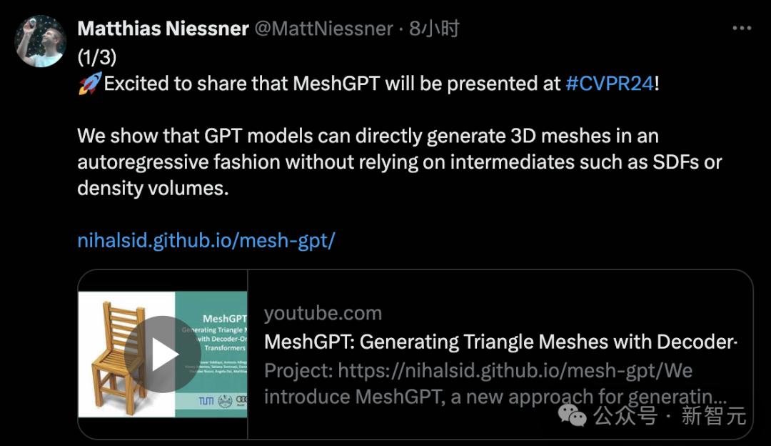 提升了3D网格的生成质量的架构MeshGPT被今年CVPR所录用。