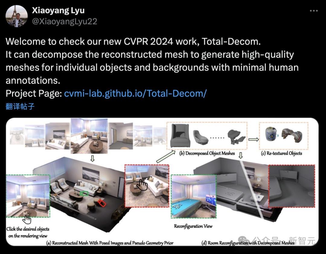 香港大学团队提出的Total-Decom被CVPR 2024录用。最新算法可以分解重建的网格,为单个物体和背景生成高质量的网格,只需最少的人工标注。
