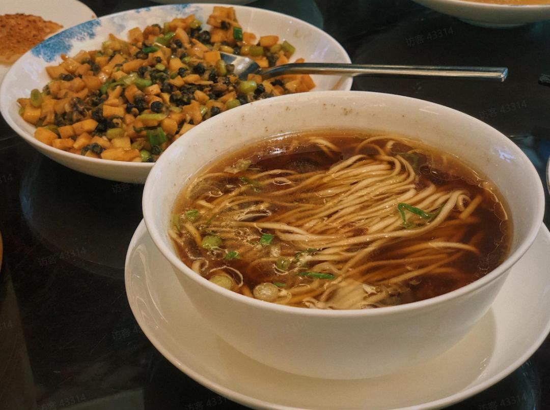 阳春面或虾子饺面就很不错,捞完面条一定别忘记面汤,酱油色的汤头看上去毫不起眼,但喝到底就能看到超多虾籽,满满鲜美滋味都融在其中。