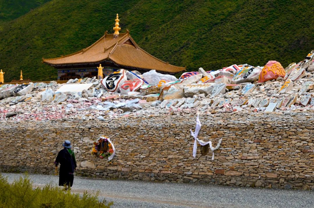 新寨嘛呢墙的第一块嘛呢石为多仁活佛所纹刻,步其后尘者便造访其道,长年累月,就有了这面嘛呢墙——加那嘛呢。