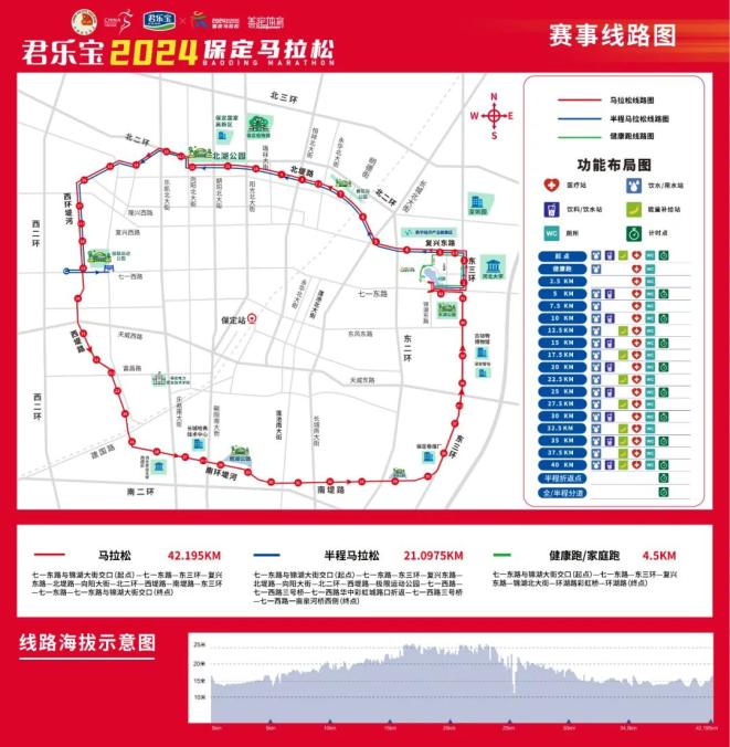 环城水系,最美赛道等您来跑经过专业测量,君乐宝2024保定马拉松赛道最终路线如下: