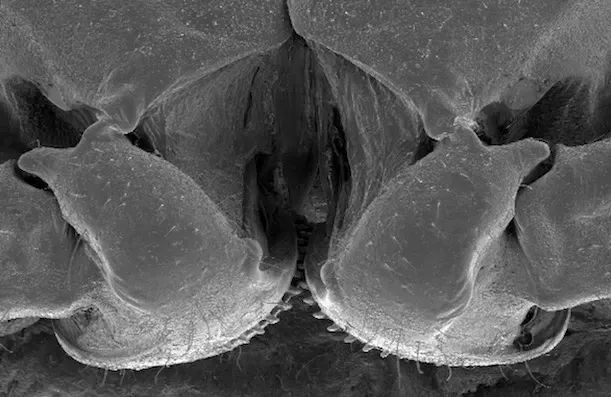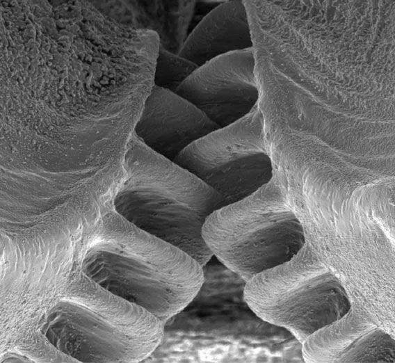 你没有看错(下图),这种小虫子进化出了齿轮,它们是目前已知唯一一种拥有齿轮结构,且应用齿轮功能的生物。