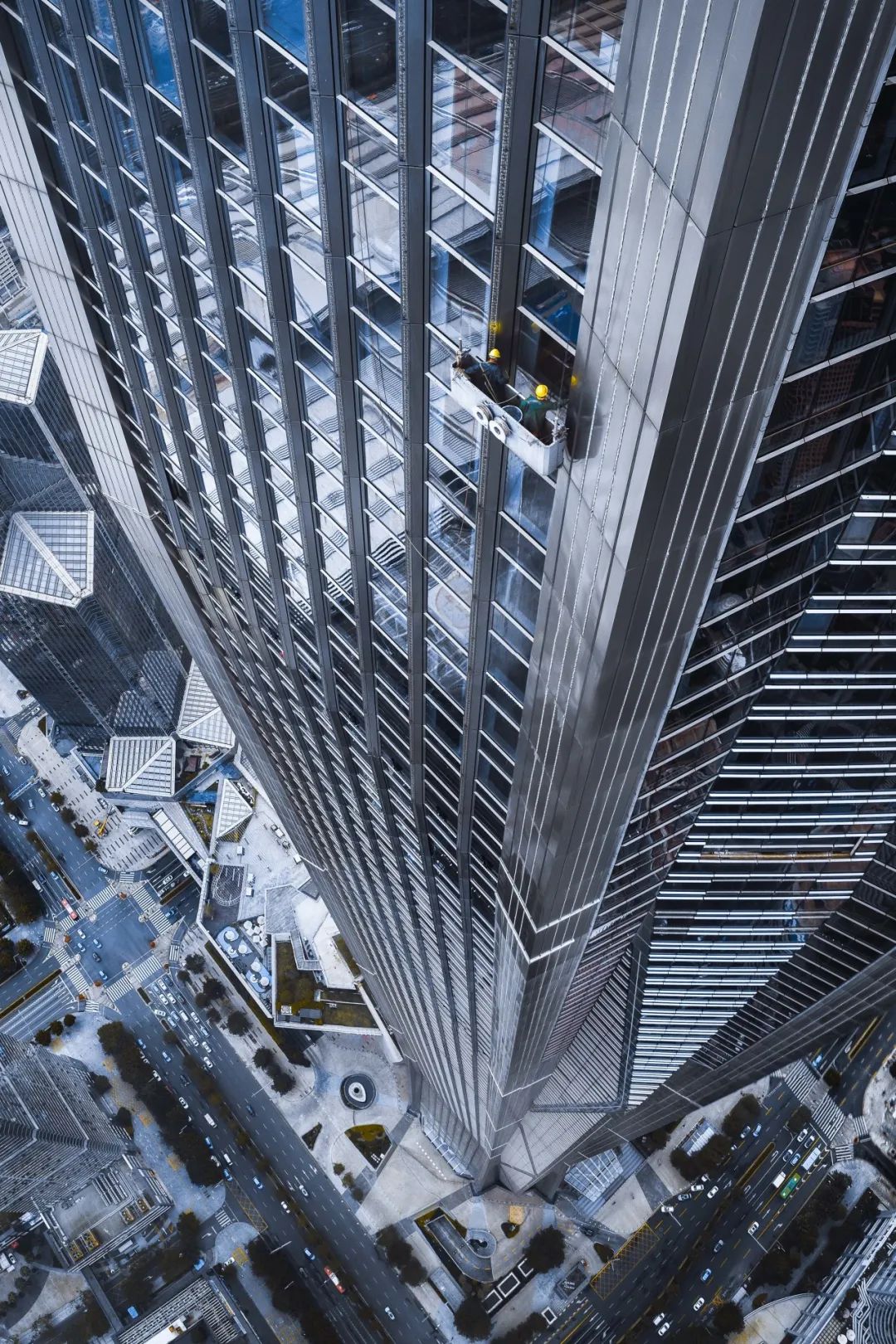 深圳某写字楼外墙,工人正在高空作业