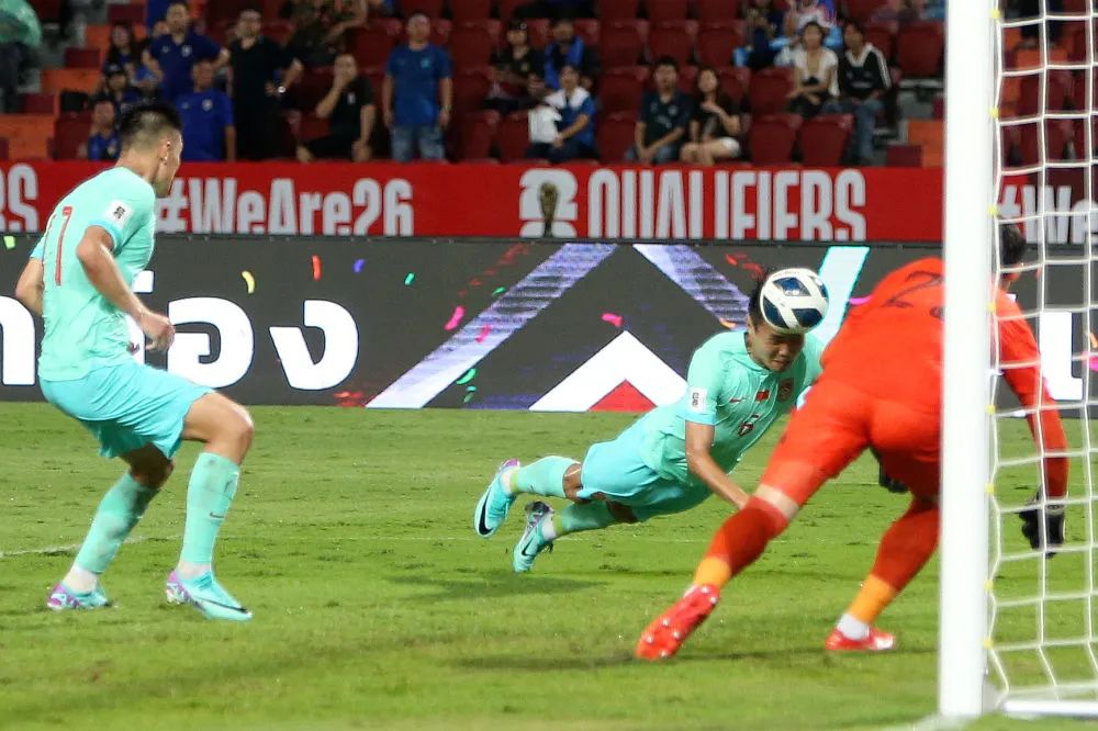 中国队球员王上源(中)在比赛中头球攻门得分。新华社记者 王腾 摄中国足协7日宣布,2026年美加墨世界杯亚洲区预选赛36强赛第五轮中国男足与泰国队的出线关键之战将于6月6日在沈阳奥体中心进行。在6月6日与泰国队的比赛中,国足如果能在主场取胜,就可以提前小组出线。