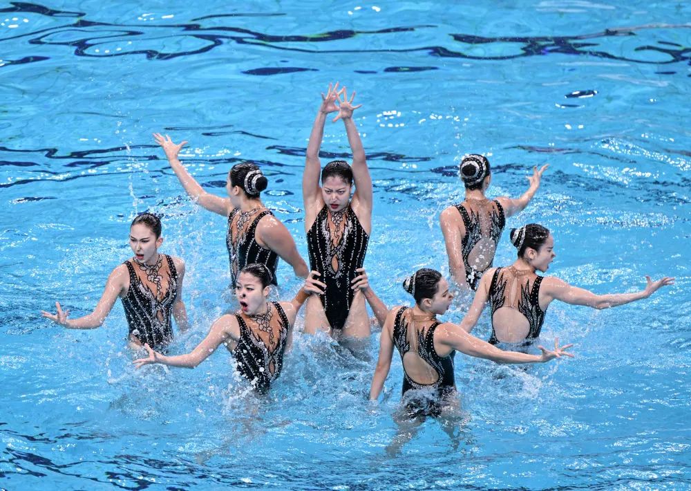 4月7日,在集体技巧自选比赛中,中国队以205.0300分的成绩获得亚军。新华社记者 夏一方 摄2024年世界泳联花样游泳世界杯(北京站)7日在国家游泳中心“水立方”落幕,中国花样游泳队在全部11个项目中斩获6金3银。2024年世界泳联花游世界杯(巴黎站)将于5月3日至5日举行,该站赛事也将是巴黎奥运会测试赛。