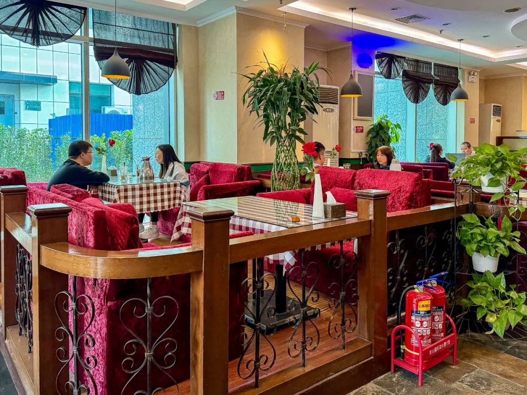 于是,“上岛咖啡·简餐”、“上岛咖啡·火锅”、“上岛咖啡·棋牌茶室”、“上岛咖啡·新派川湘菜”开始自我变革,主打“108一份的土鸡煲农家乐”,“正宗酸菜鱼”的上岛开始诞生。它们不仅为老式现磨咖啡配了植脂末,给小朋友保留了铁板通心粉,还为你那嘴挑的奶奶、难缠的领导准备了自动麻将桌和带投影仪的会议室。总之为了能生存,咖啡馆经营者什么十八般武艺都能上。在电子营销话术满天的时代,这些自我变革的上岛加盟商,依靠最初投资时搭建的复古的感氛围,认真做熟悉家常菜的简单理念,以及细水长流不乱花钱投广告的思维,竟然奇迹般地生存了下来。我去的这家位于北京双井的上岛咖啡,就是2000年左右成立的老店。在如今内卷到机智的咖啡大战中,显得格外悠然自得。