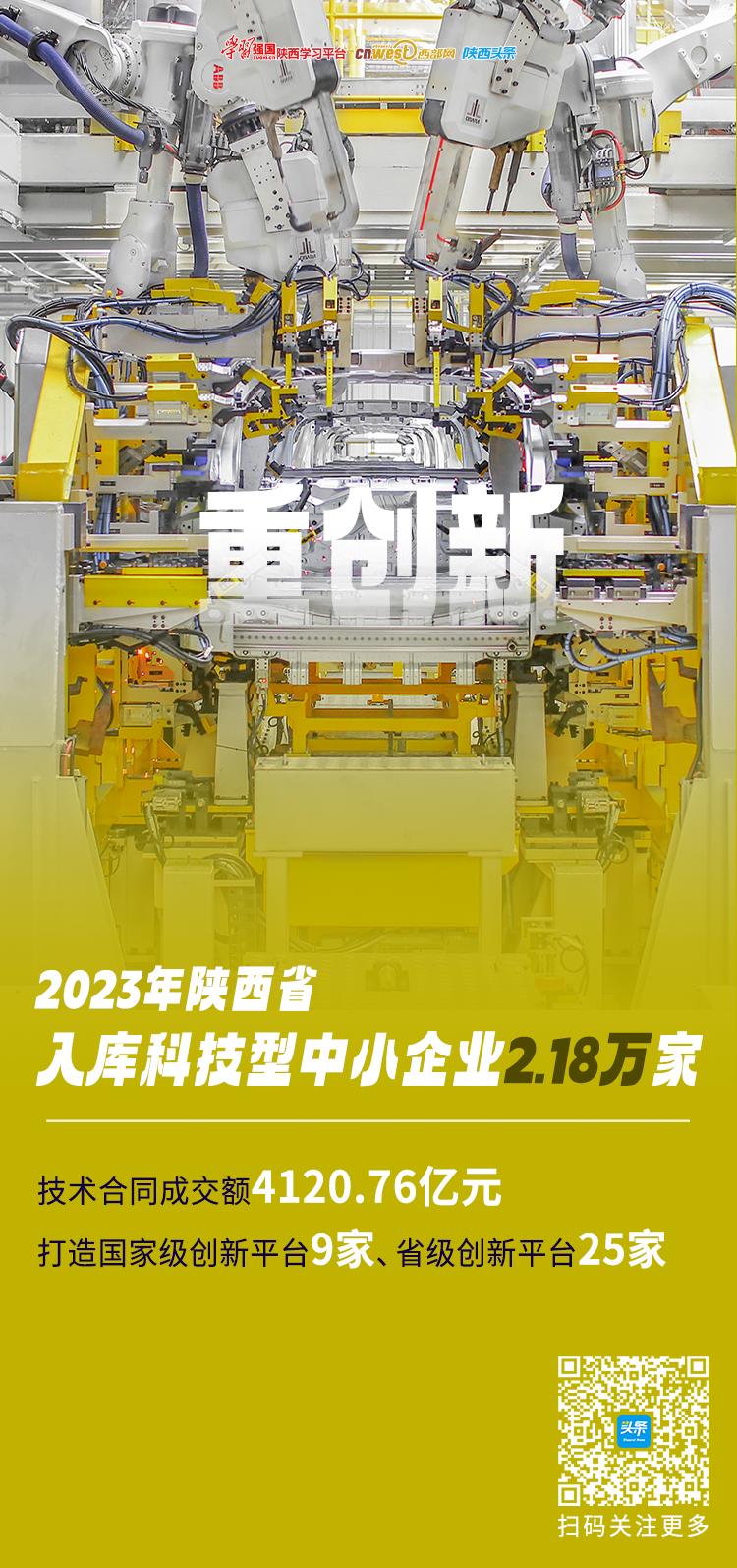 2023年陕西省入库科技型中小企业2.18万家,技术合同成交额4120.76亿元