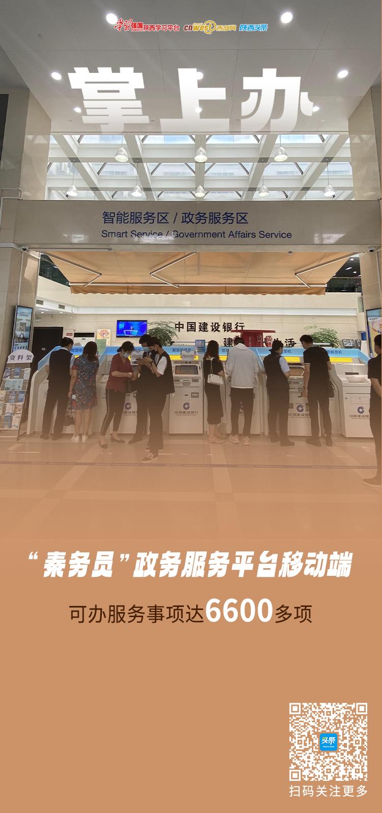七、掌上办“秦务员”政务服务平台移动端可办服务事项达6600多项,“掌上办”“指尖办”已成为政务服务标配