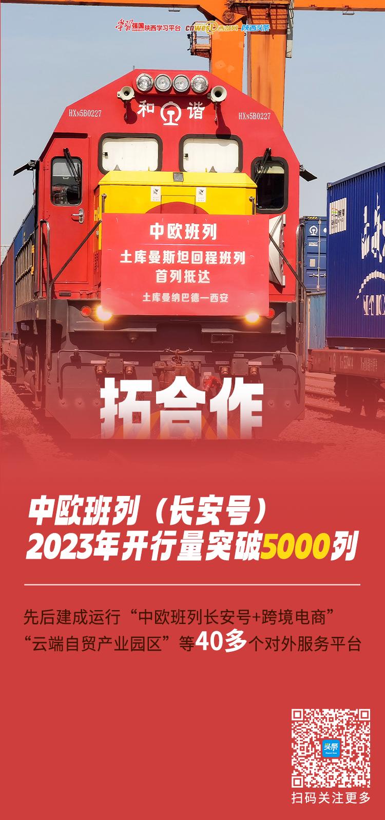 八、拓合作先后建成运行“中欧班列长安号+跨境电商”“云端自贸产业园区”等40多个对外服务平台,中欧班列(长安号)2023年开行量突破5000列