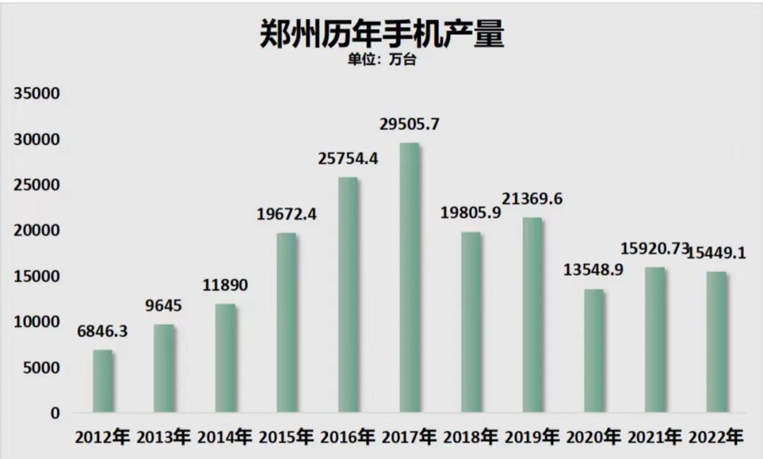 众所周知,郑州过去十多年的产业升级,与电子信息产业的崛起有着直接关系。但因为多种原因,这一产业在过去几年受到一定的冲击。如2023年,郑州手机产量比上年下降7.5%,与高峰期的2017年相比,几近腰斩。