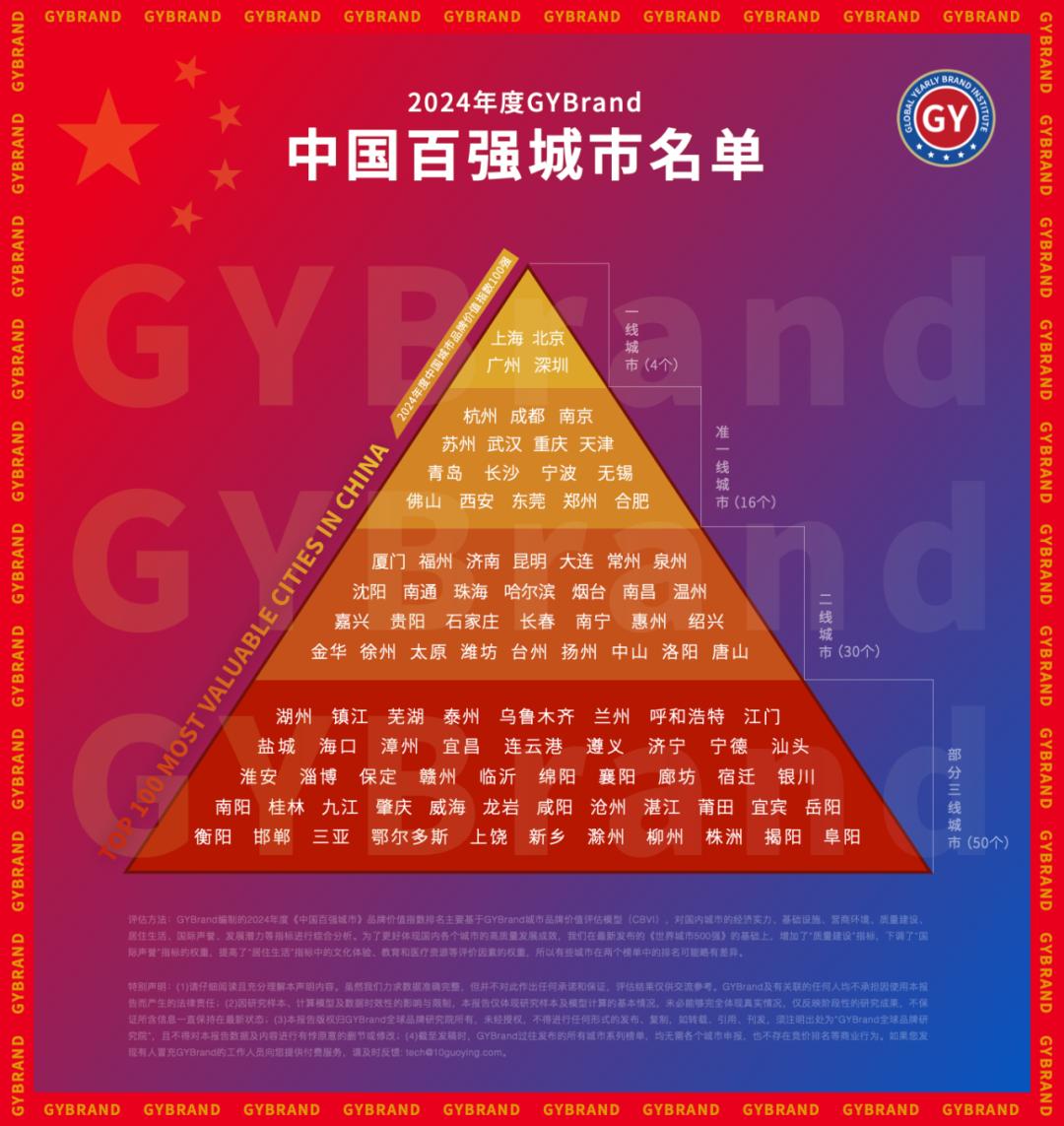 4月8日,品牌价值评估机构GYBrand发布“2024年中国百强城市排行榜”。本年度城市排名前十依次是:上海、北京、广州、深圳、杭州、成都、南京、苏州、武汉、重庆。