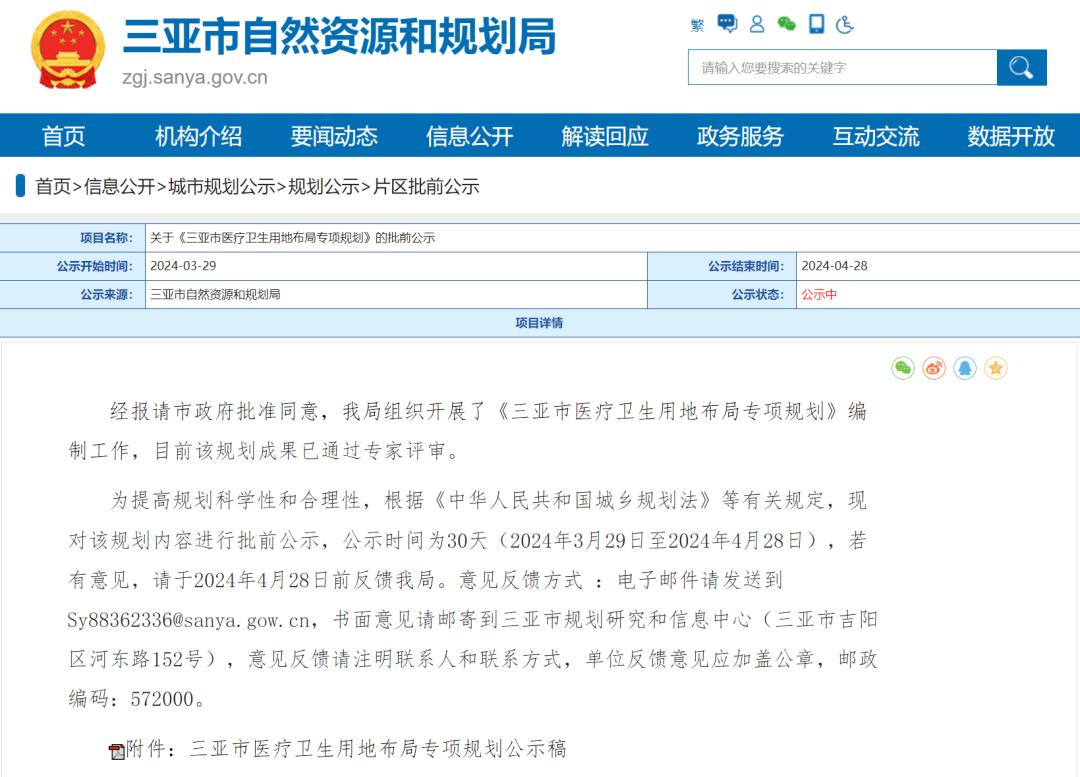 三亚市自然资源和规划局官网截图三亚市医疗卫生用地布局专项规划公示稿