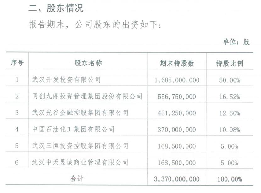 股权结构显示,华源证券共有6家股东构成,分别是4家武汉国资旗下企业、中国石油化工集团和民企同创九鼎投资管理有限公司,武汉国资旗下4家公司武汉开发投资、武汉光谷金控、武汉三恒集团、武汉中天昱诚合计持有72.5%,中国石油化工集团和民企同创九鼎投资分别持股10.98%和16.52%。