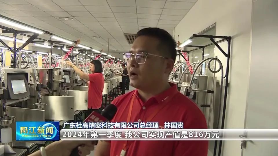 广东杜高精密科技有限公司总经理 林国贵:2024年第一季度,我公司实现产值是816万元。同比2023年第一季度198万元,同比增长313%,预计我们第二季度,订单量会环比增长30%。今年我们的目标同比去年增长30%以上,预计可以达到3800万元以上。