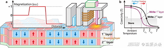 作者写道,“由于每层的居里温度不同,下层的写入磁道宽度约为60纳米,上层的写入磁道宽度约为100纳米。”