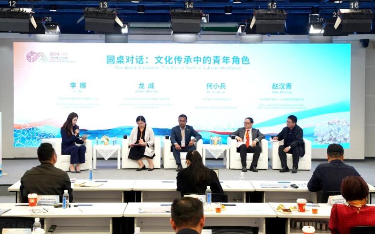 在圆桌对话环节,与会嘉宾进行探讨在圆桌对话环节,与会嘉宾以“文明交流互鉴中的媒体关注”“文化传承中的青年角色”为主题,探讨如何更好地推动中国文化和东盟国家文化的交流与合作,青少年受众领域的传播特点与未来趋势及媒体对此进行的策略调整与传播实践。
