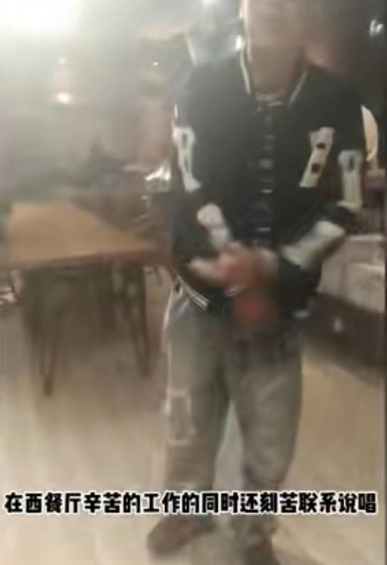 在西餐厅当服务员时,一有时间就练习说唱。有段时间在工地打工,后来把小拇指干断了一节。