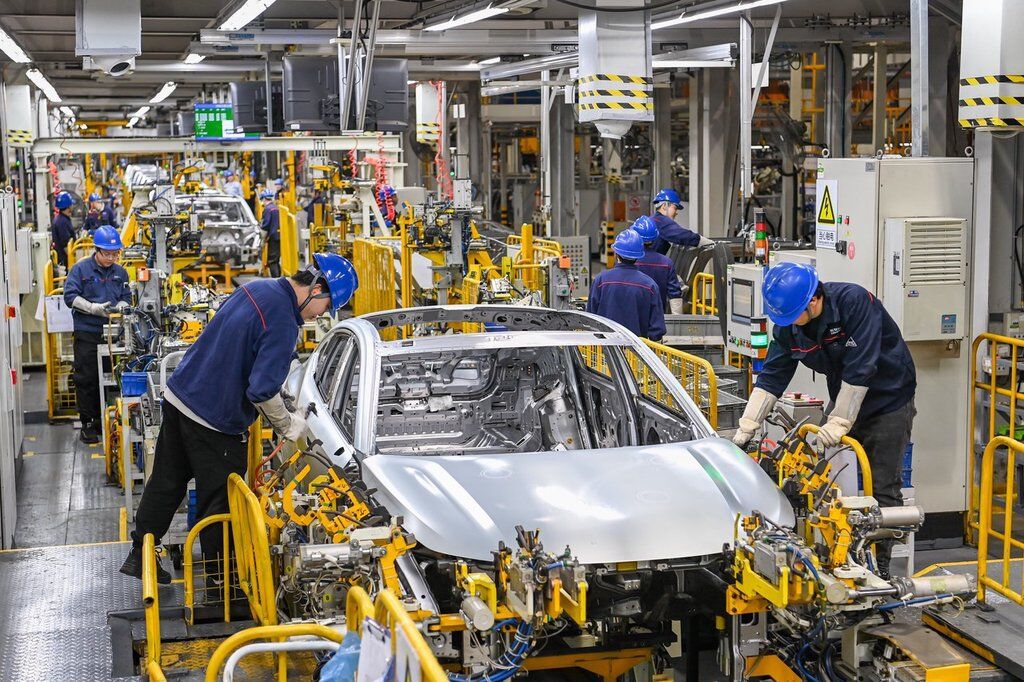 首先,冲压是对铁皮或者铝合金进行冲压成型,做成各种钣金件;而焊接是在底盘的基础上,把这些钣金件拼成白车身;然后,再把白车身整个拿去做涂装,包括电泳、喷漆等;最后总装再把中控、座椅、天窗、轮毂等各个零部件装到白车身上,这样一辆车就算基本完成了。