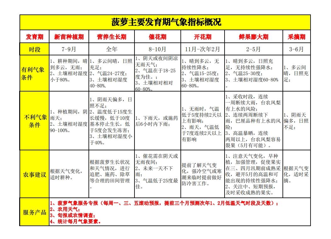 主动提供菠萝全链条气象服务