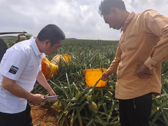 徐闻县气象局农气观测员陈颖到菠萝地为种植户提供气象服务