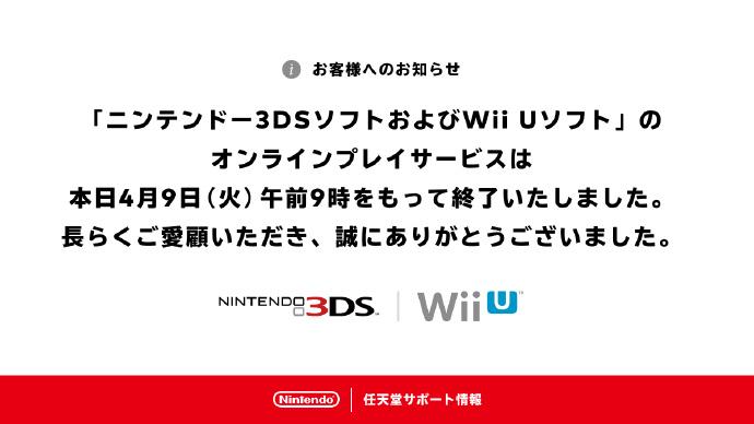 4 月 9 日上午,任天堂宣布正式停止 3DS 与 WiiU 的网络服务。