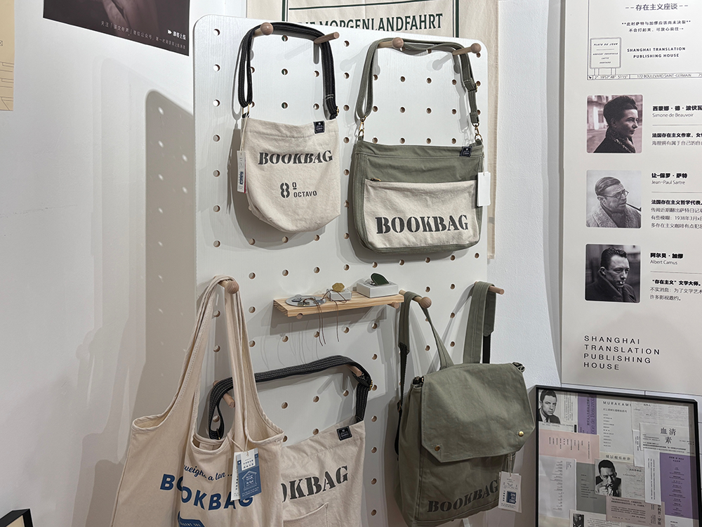 展览聚焦的作家作品,读者均可以在展览中扫码聆听有声版,还可通过关注“译文有声”账号获得会员畅听体验福利。上海译文出版社自有文创品牌“七海制造局”也在展览现场展出了多个经典条线周边,并上新了“书本物理学社”系列的部分新品。该系列灵感取自书本开本的不同定义,打造了适合阅读者不同出行需求所使用的包袋。读者可以在展览自由背起书包自在体验,再前往上海译文出版社天猫旗舰店选购。