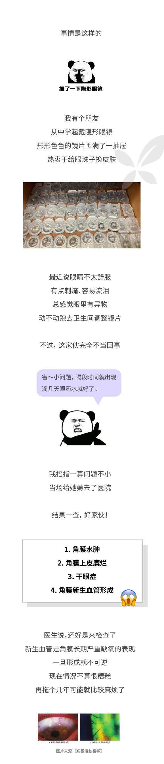 这些周期很长的隐形眼镜一般透氧量很低,使用和护理不当还会导致风险成倍增加,很多研究都证实了这一点。(再省不能省眼睛)