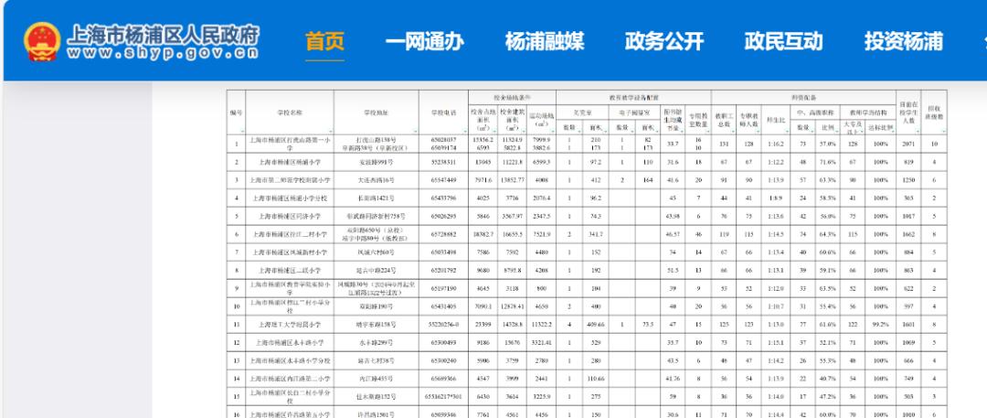 下面列出了杨浦区各个公办小学的“教学质量”排序。