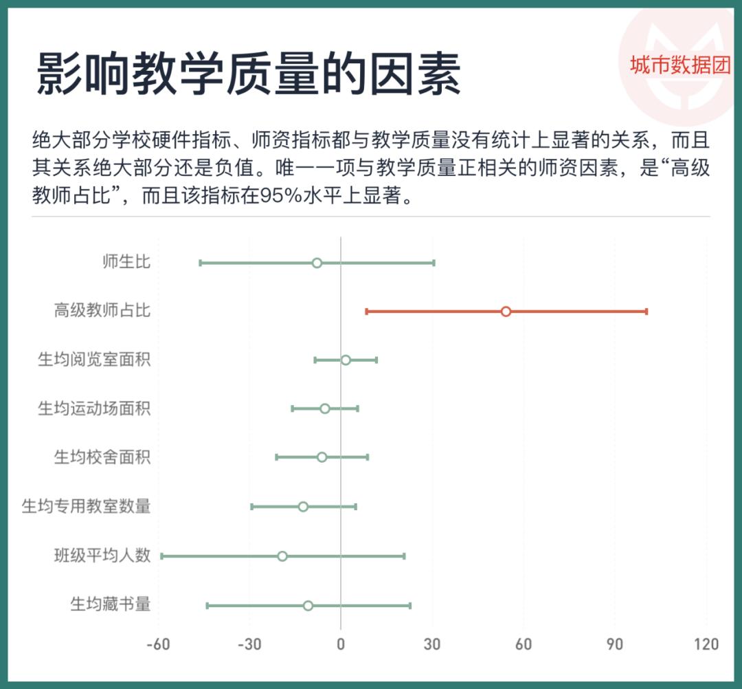 唯一一项与教学质量正相关的师资因素,是“高级教师占比”,而且该指标在95%水平上显著。