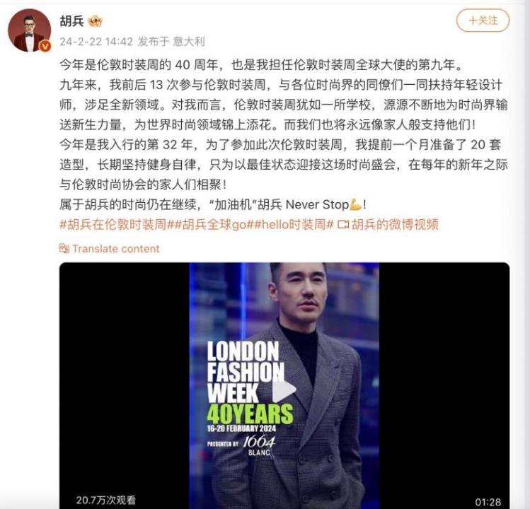 沈梦辰晒出在巴黎为本土设计师品牌走秀的人生第一张模特定妆照,而担任伦敦时装周全球大使已经第九年、入行已经32年的胡兵,在微博发出了前辈对时尚行业的感慨。明星在此刻也成了链接公众粉丝、时尚理念和品牌价值的最好桥梁。
