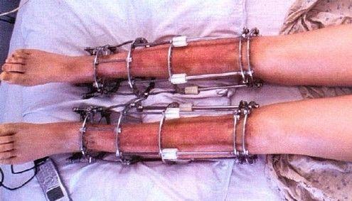 (由于牵拉速度过快,小腿皮肤呈现出鲜红色。图源:网络)矫正畸形身体的医术,与纵容畸形心理的邪术之间,不过只是一念之差。