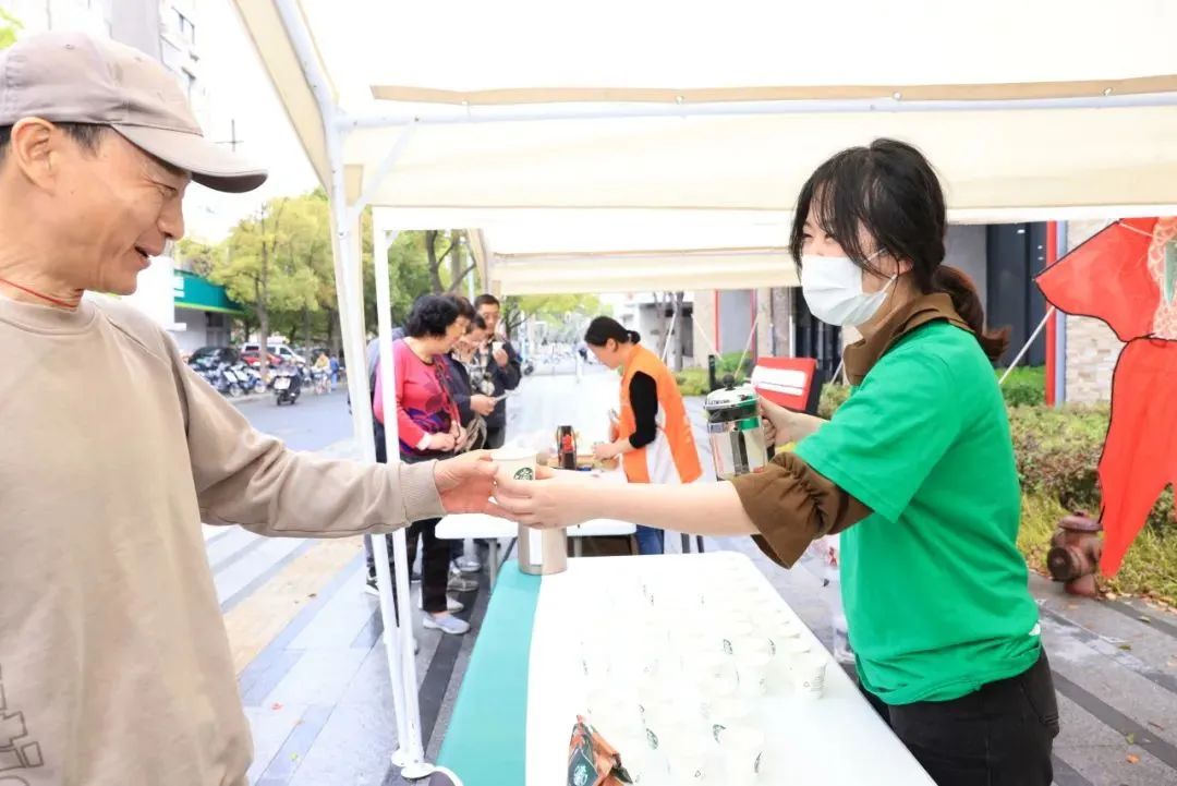 公益团队为居民现场制作手冲咖啡,并免费赠送可以用作绿植肥料的咖啡渣,积极倡导绿色低碳理念。春暖花开