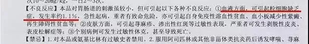 可引起粒细胞缺乏症,发生率约1.1%,急性起病,重者有致命危险,亦可引起自身免疫性溶血性贫血、血小板减少性紫癜、再生障碍性贫血等。