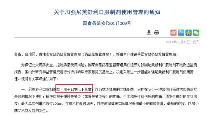 这款药一般是拿来消炎、镇痛的。可爱卡通的包装,看起来也没什么不妥。但在2011年国家药品监督管理局也发了公告——明确禁止尼美舒利用于12岁以下的儿童。