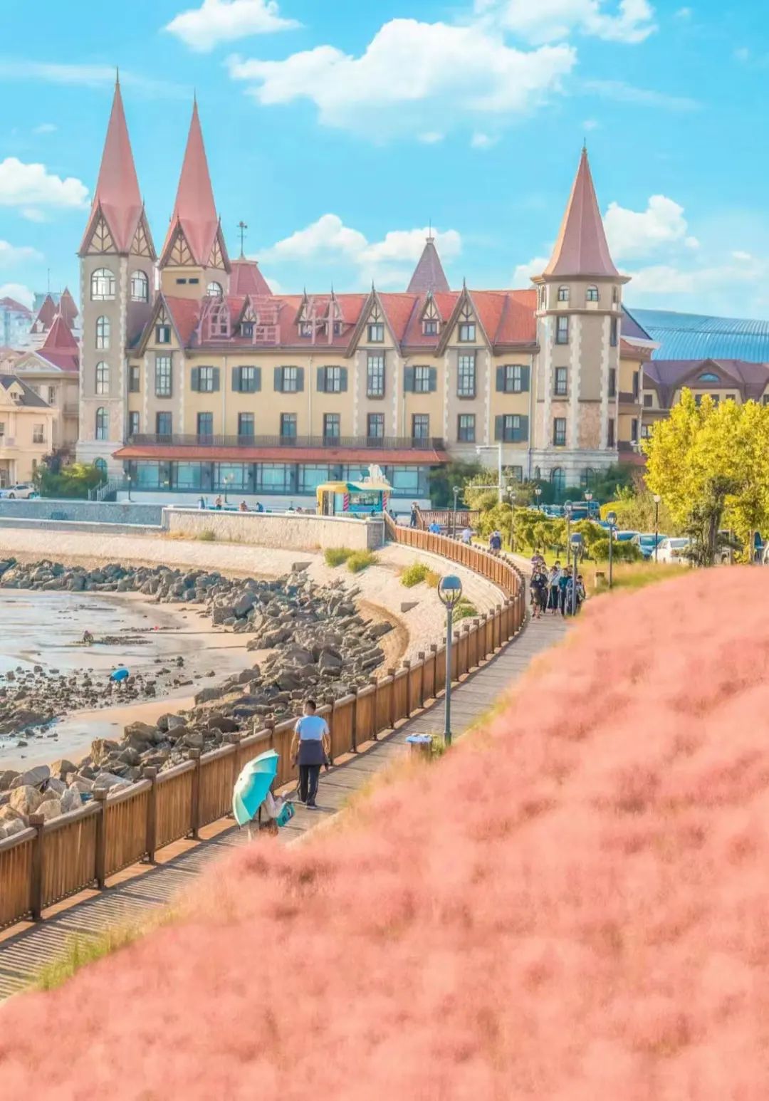 ©️DD有颗少女心骑着小电驴,看梦幻城堡和粉色沙滩。