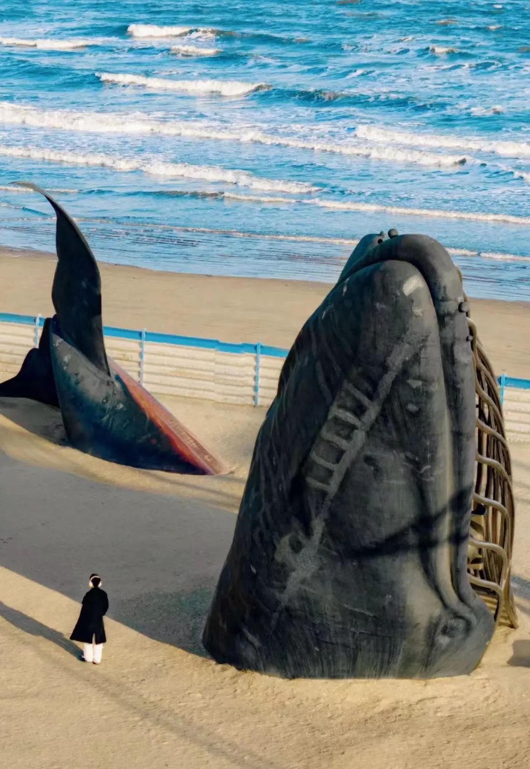 “孤独的鲸”应该是烟台市区最出片的地方了,沿着海边一直走就能看到超级灵动的巨型鲸鱼。