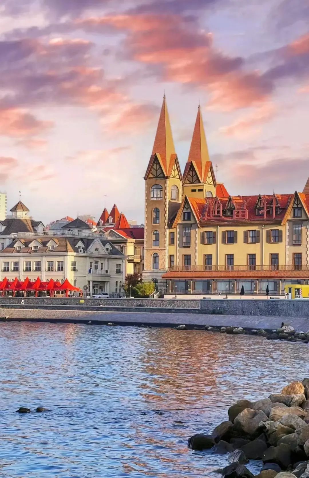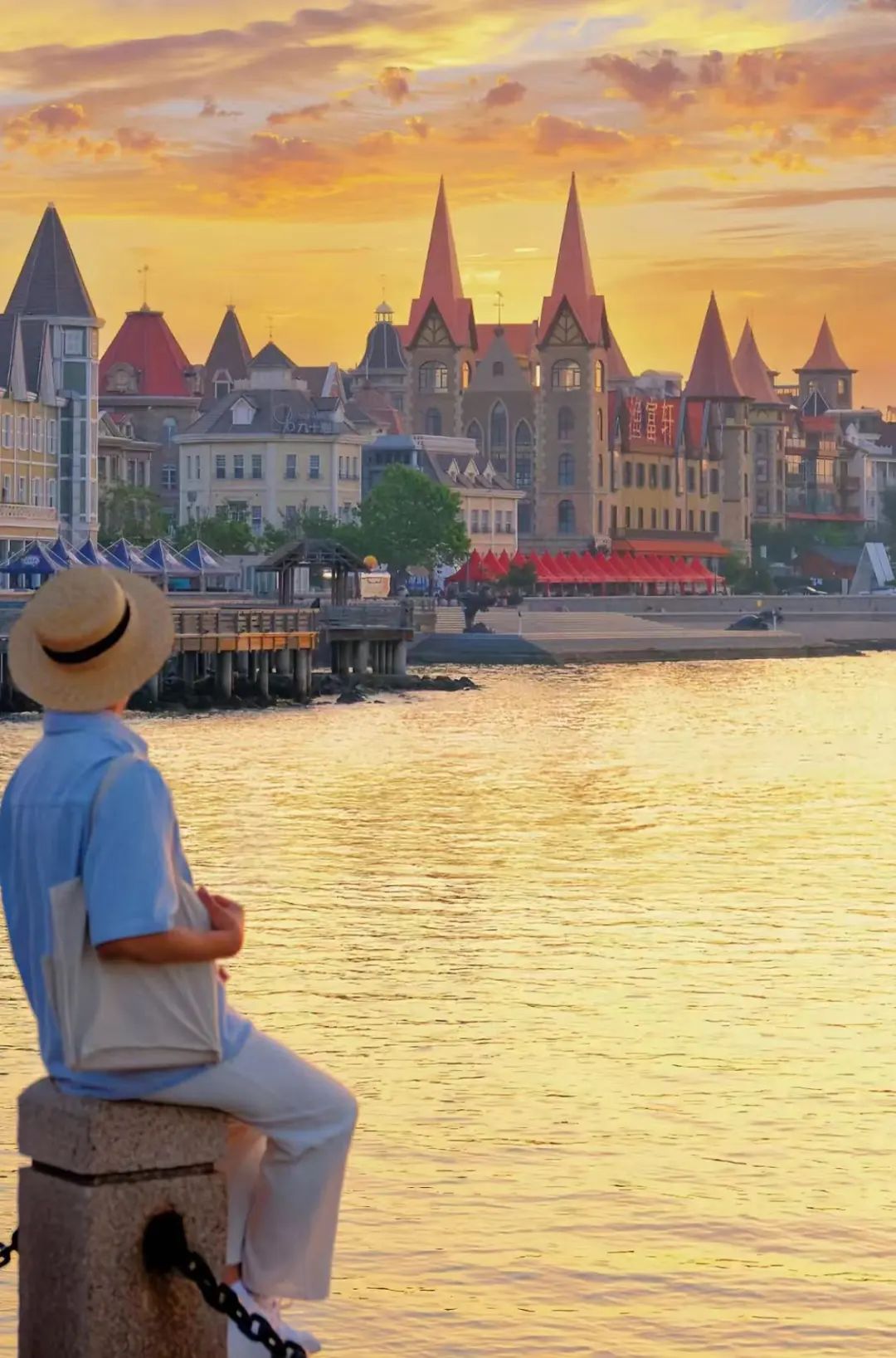 烟台的每个角落都散发着文艺气息,从滨海中路的公交站往渔人码头看,那种梦回中世纪的穿越感真的很强烈。