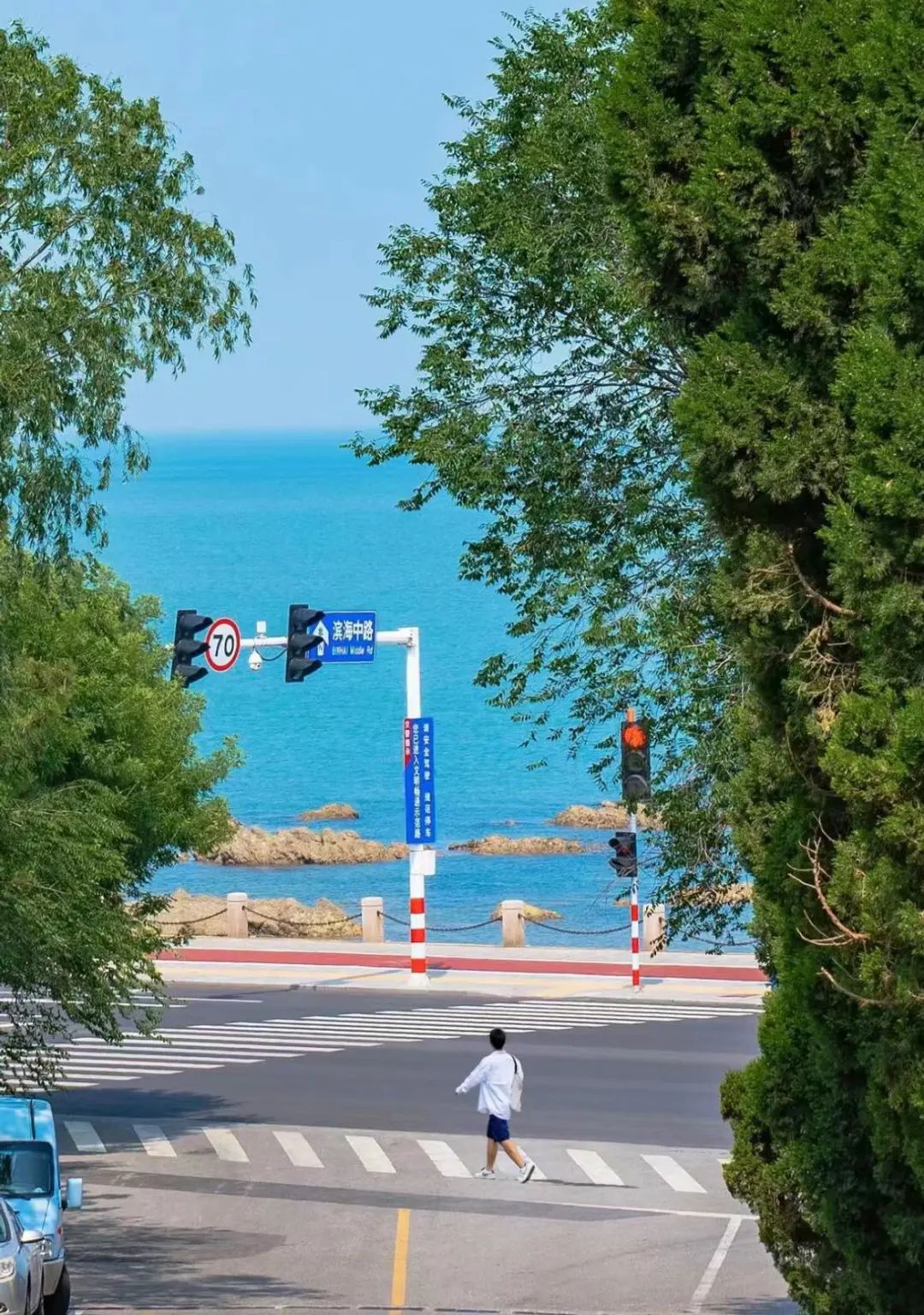 烟台一半的浪漫都在长达11公里的滨海中路了,沿着沿海线都能看到看到大海。