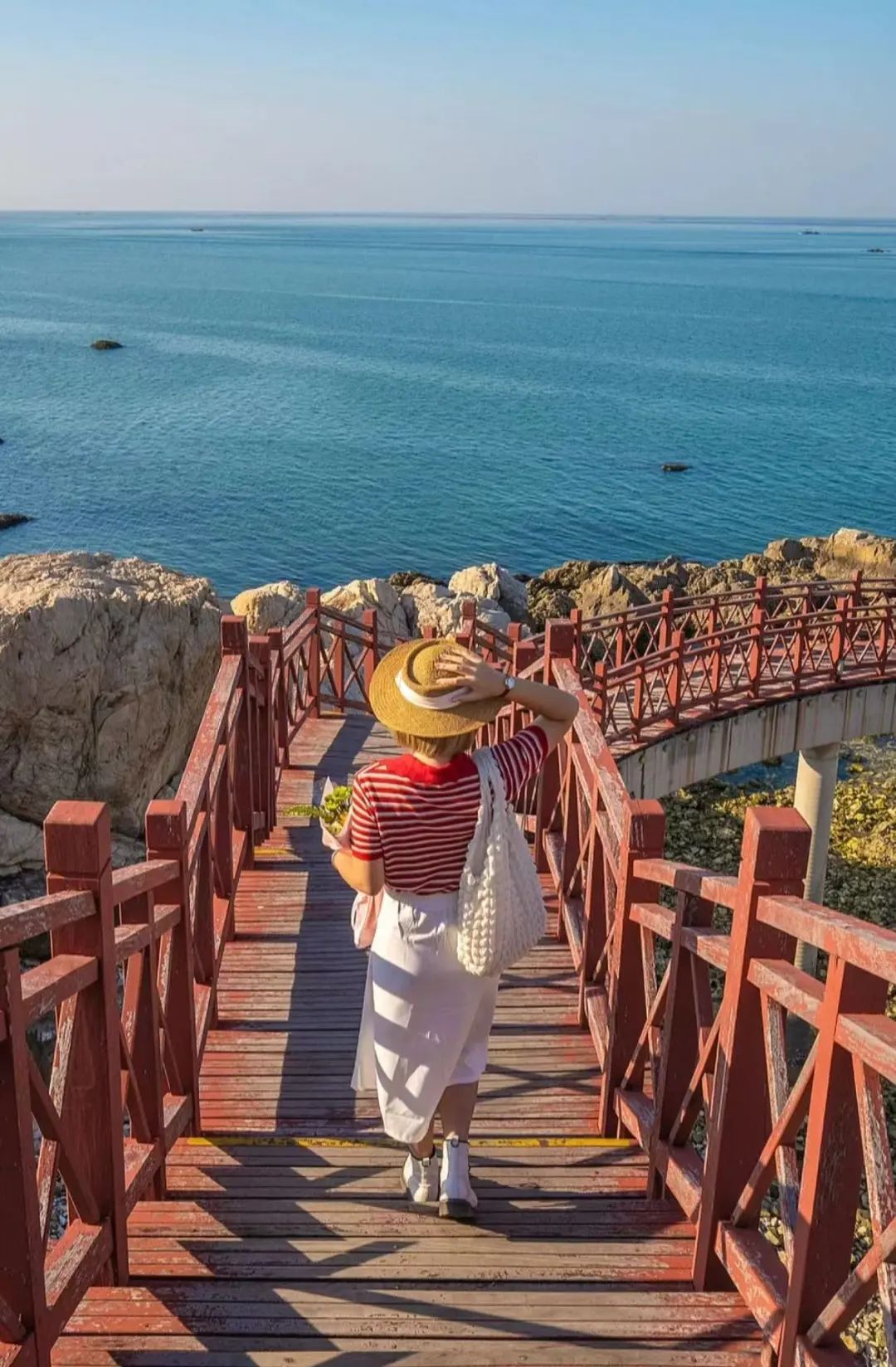 想出片的,可以去龙爪山公园,顺着长长的阶梯走到高处可面朝大海吹吹微凉的海风,两旁还有巨大的石头,一眼望过去,壮阔极了。