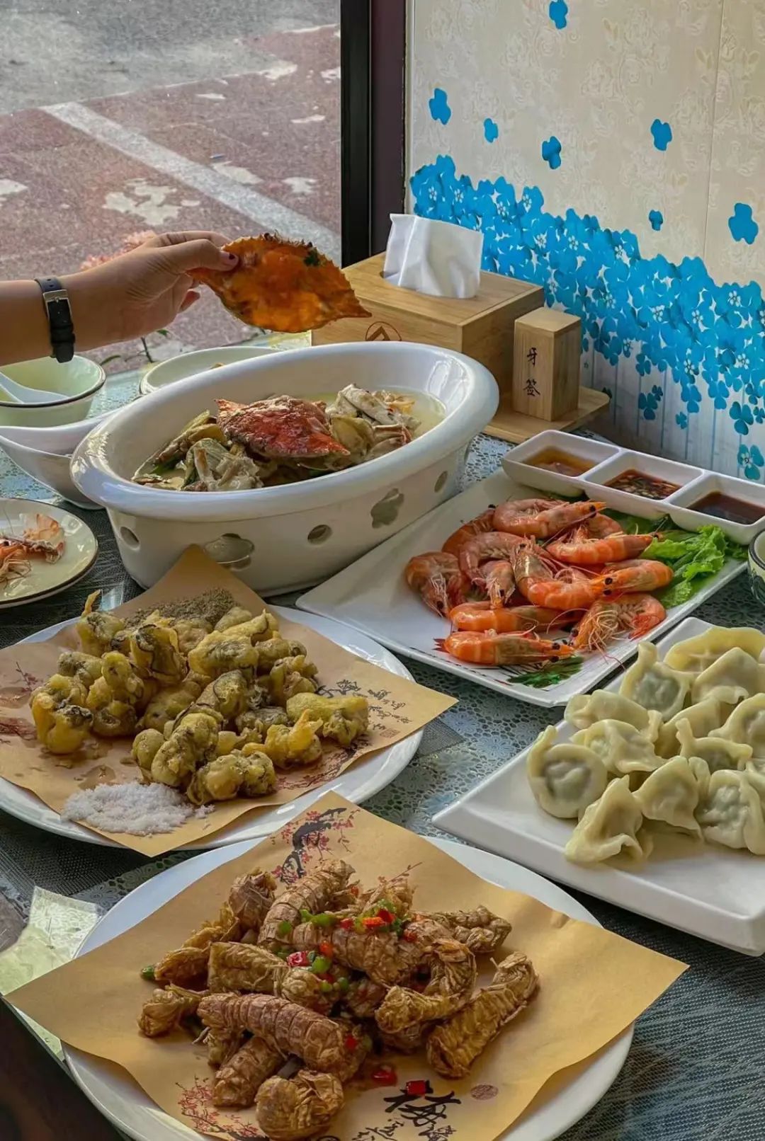 样样红海鲜酒店(香山路8号)和小红鲸旗鼓相当,也是一家老海鲜店了,海鲜一样是现挑的、他家的炸蛎黄、葱油天鹅蛋、鸟贝几乎是桌桌必点,口味很独特,火了10多年都难以超越。