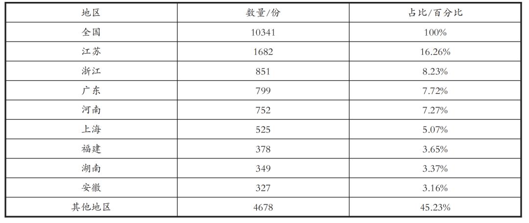 通过下表可知,全国范围内侵犯公民个人信息罪主要集中在经济较为发达、人口较为密集的中、南部地区。通过裁判文书网检索数据来看,占比最高的是江苏1682份,占比16.26%。江苏、浙江、广东等8个地区占侵犯公民个人信息罪裁判文书总数的54.77%。