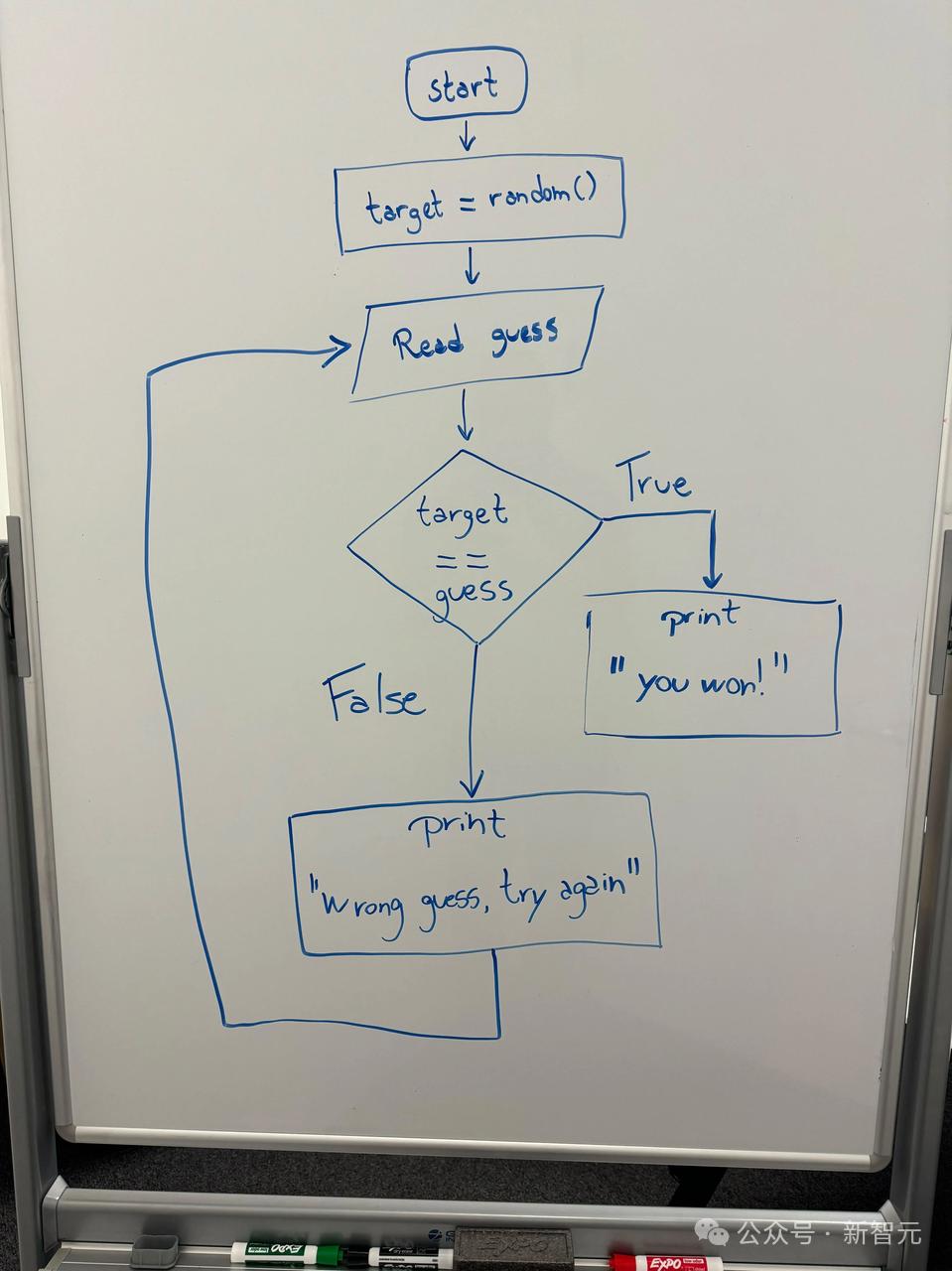 下图给出了一个简单的猜谜游戏的流程图,Grok可以根据流程图具体内容,使用python代码实现该流程。